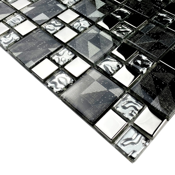 Crystal glass mosaic tile XGS MQ05, a combination of shimmer foil glass tile and electroplated glass tile.