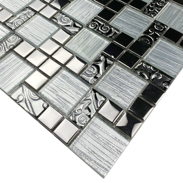 Crystal glass mosaic tile XGS MQ06, a combination of shimmer silk foil glass tile and electroplated decorative glass tiles.