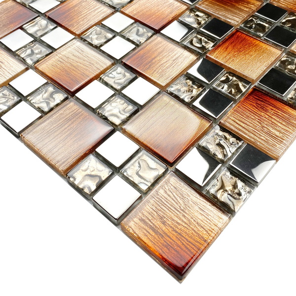 Crystal glass mosaic tile XGS MQ07, a combination of shimmer foil glass tile and electroplated decorative glass tiles.