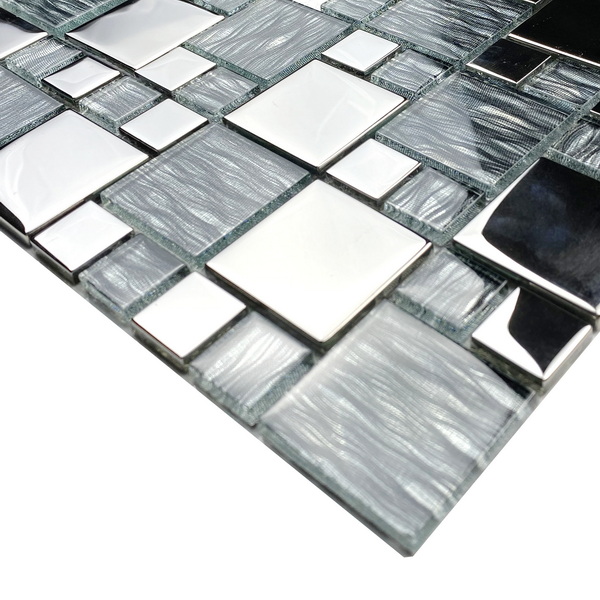 Crystal glass mosaic tile XGS MQ09, a combination of shimmer silk foil glass tile and electroplated decorative glass tiles.