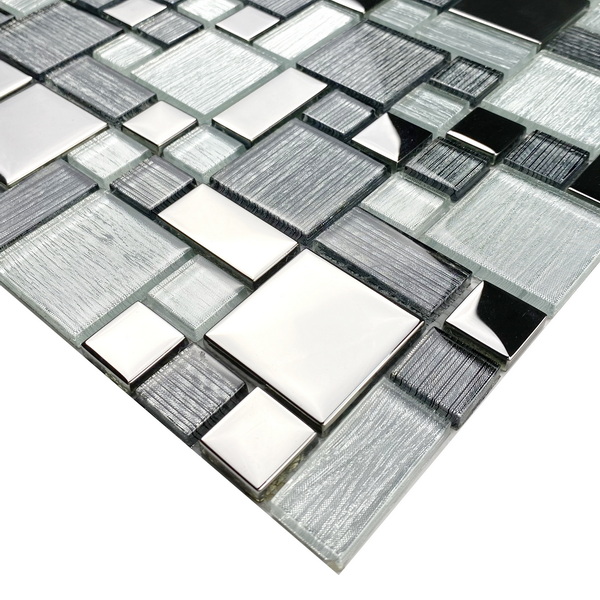Crystal glass mosaic tile XGS MQ10, a combination of shimmer silk foil glass tile and electroplated decorative glass tiles.