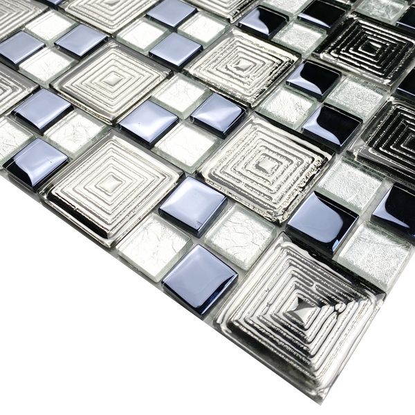 Crystal glass mosaic tile XGS MQ14, a combination of silver foil glass tile and electroplated decorative glass tile.