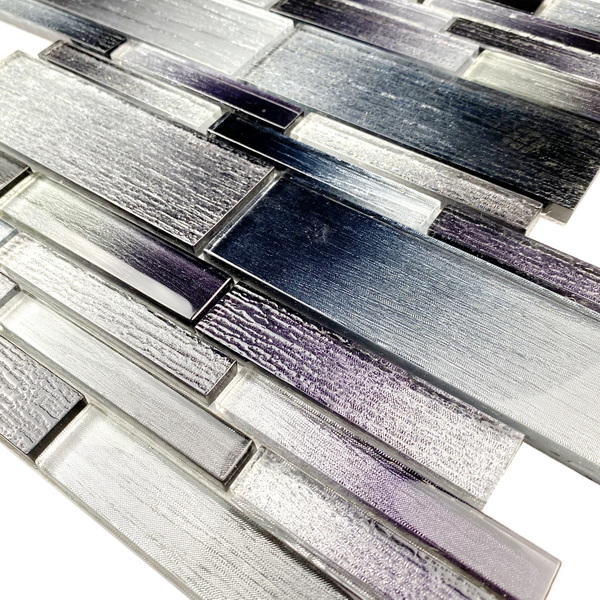 crystal glass mosaic tile, shimmer silk foil glass tiles, random strip mosaic tile.