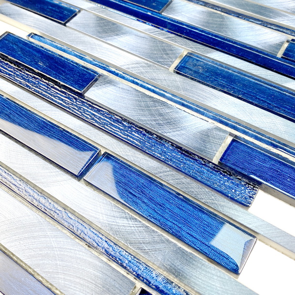mixed mosaic tile of shimmer silk foil glass tile and aluminum alloy tile, random strip mosaic tile.