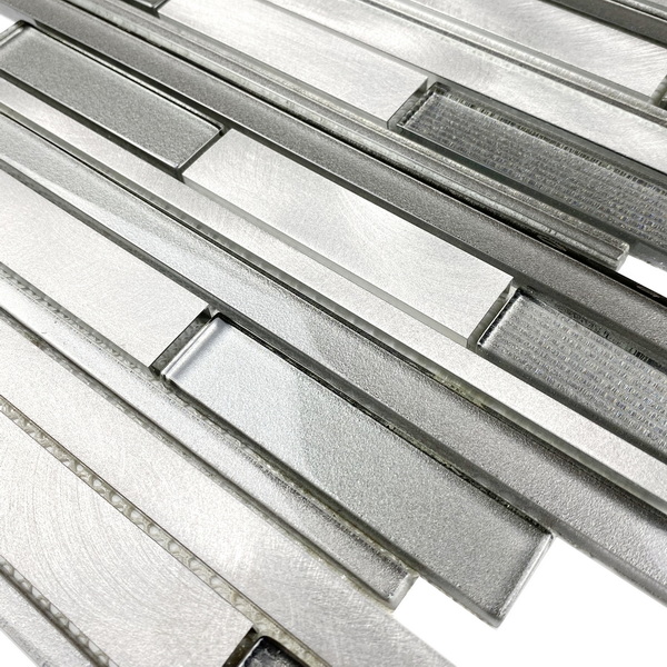 mixed mosaic tile of metallic powder coated glass tile and aluminum alloy tile, random strip mosaic tile.