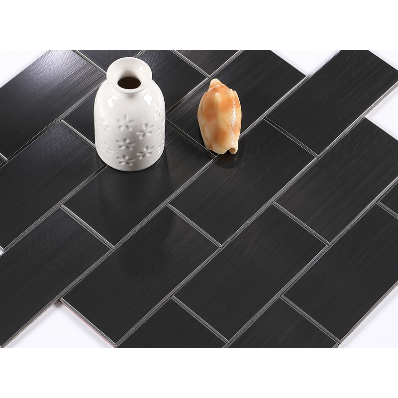 peel and stick aluminum composite tile, 2×4 inch subway tile, aluminum brushed, bevel tile, carbon black.