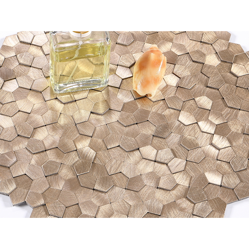 peel and stick aluminum composite tile, irregular pentagon mosaic tile, uneven mosaic tile, light gold.