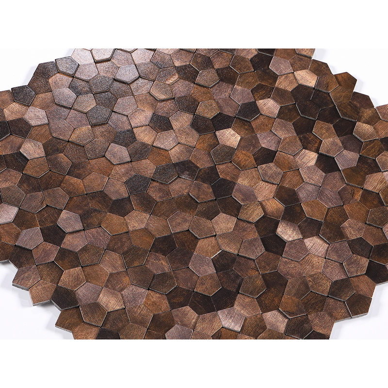 peel and stick aluminum composite tile, irregular pentagon mosaic tile, uneven mosaic tile, antique khaki.