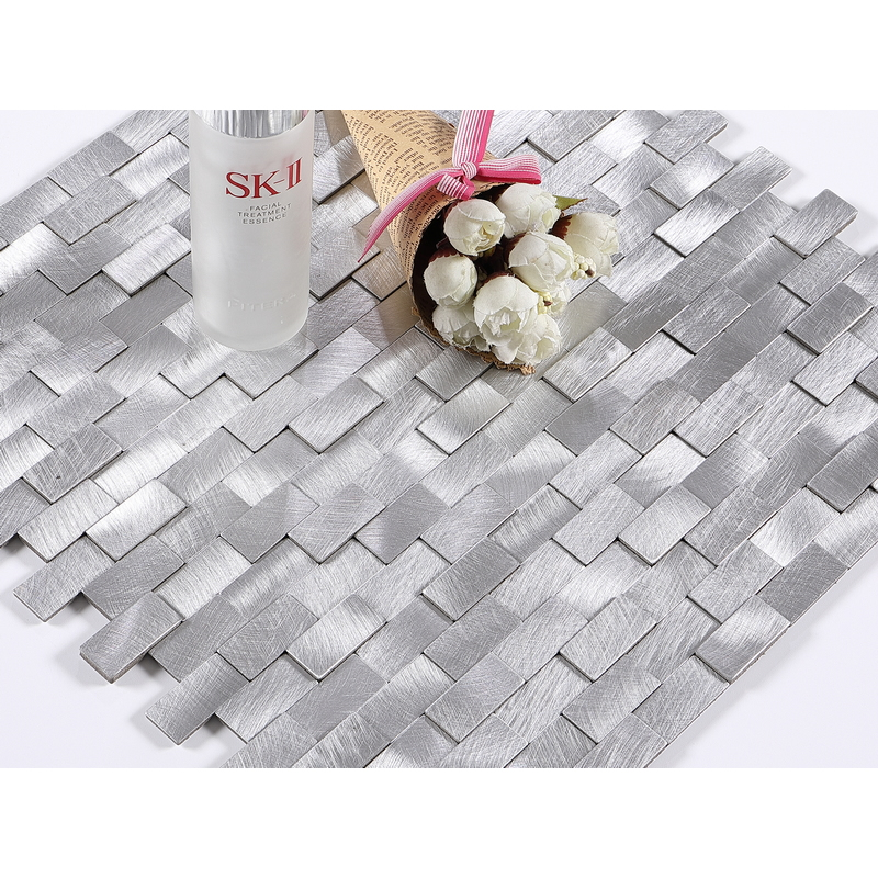 peel and stick aluminum composite tile, mini brick mosaic tile, uneven aluminum mosaic tile, silver grey.