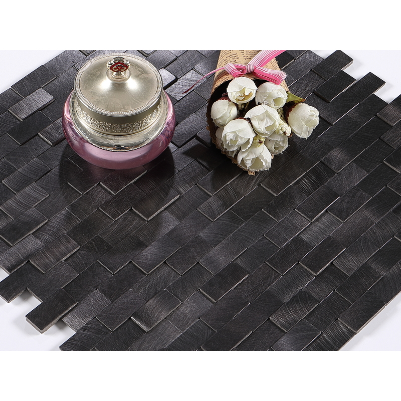 peel and stick aluminum composite tile, mini brick mosaic tile, uneven aluminum mosaic tile, black.