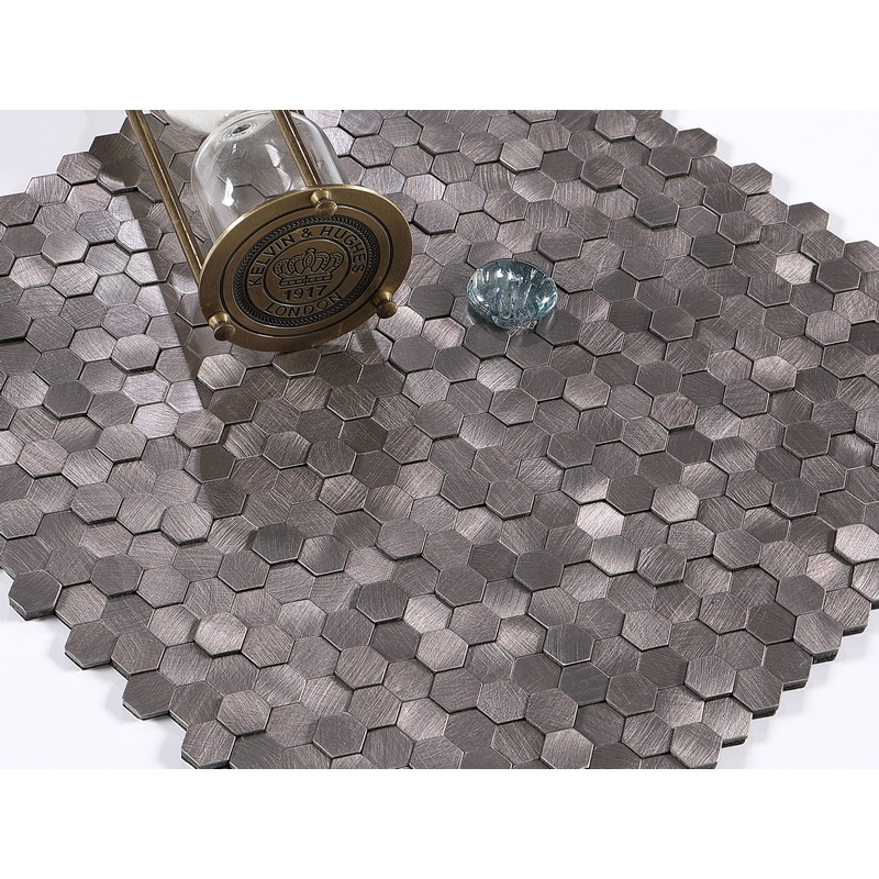 peel and stick aluminum composite tile, small hexagon tile, uneven mosaic tile, light grey.