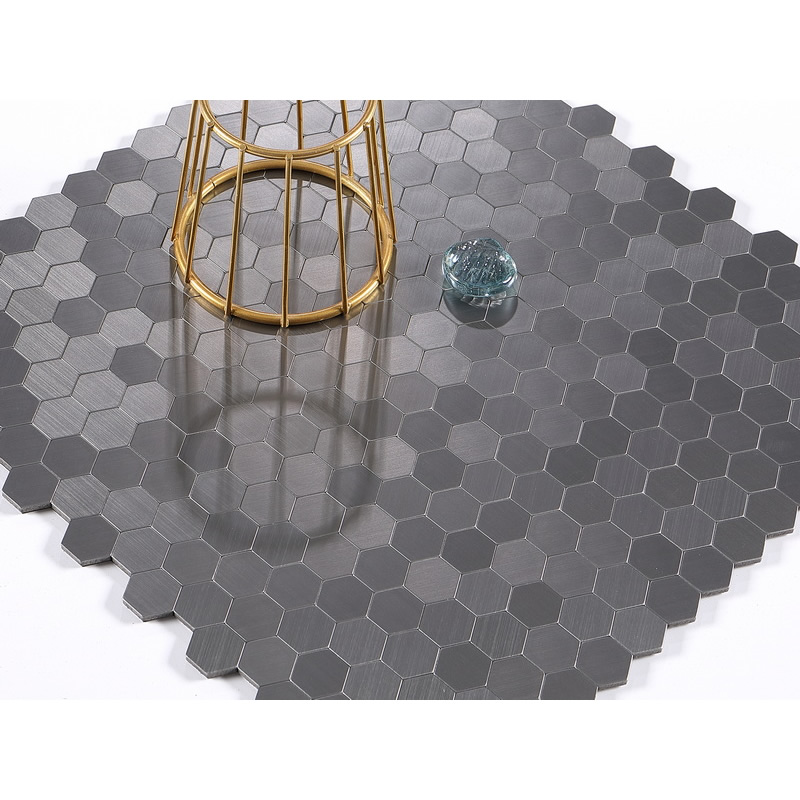 peel and stick aluminum composite tile, small hexagon aluminum tile, iron grey.