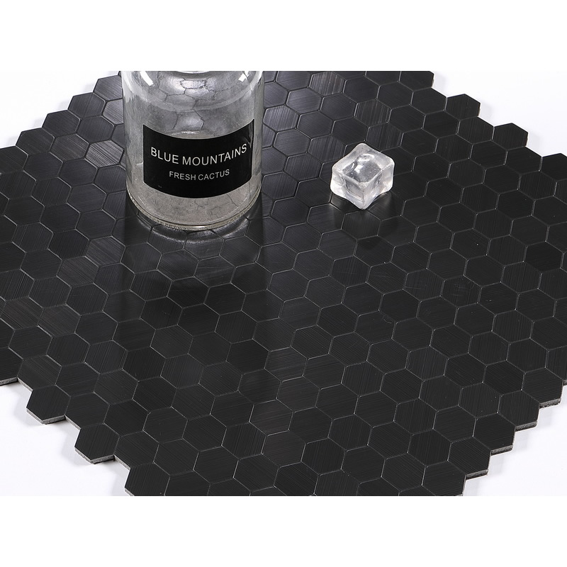 peel and stick aluminum composite tile, small hexagon aluminum tile, carbon black.