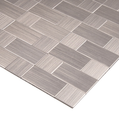 peel and stick aluminum composite mosaic tile silver brushed, metal tile, no grout needed, time saving easy and fast DIY installation.