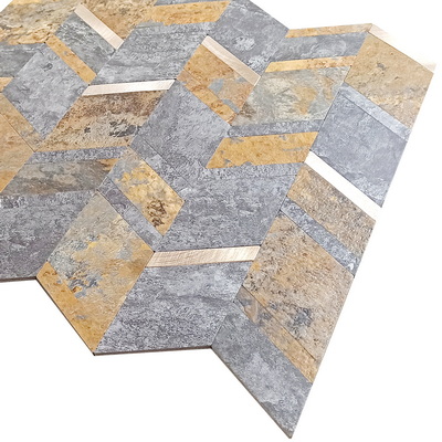 backsplash tile kitchen tile wall tile rustic stone like PVC laminate tile combines with aluminum composite tile gold, more colors customizable