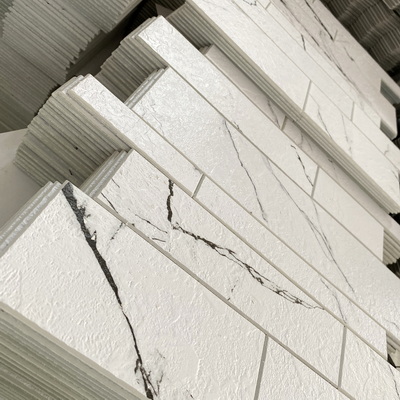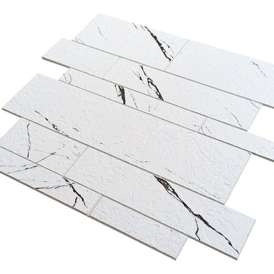 peel and stick stonelike white SPC mosaic tile, edge beveled, no grout needed, time saving wall mosaic tile, kitchen mosaic tile, backsplash mosaic tile.